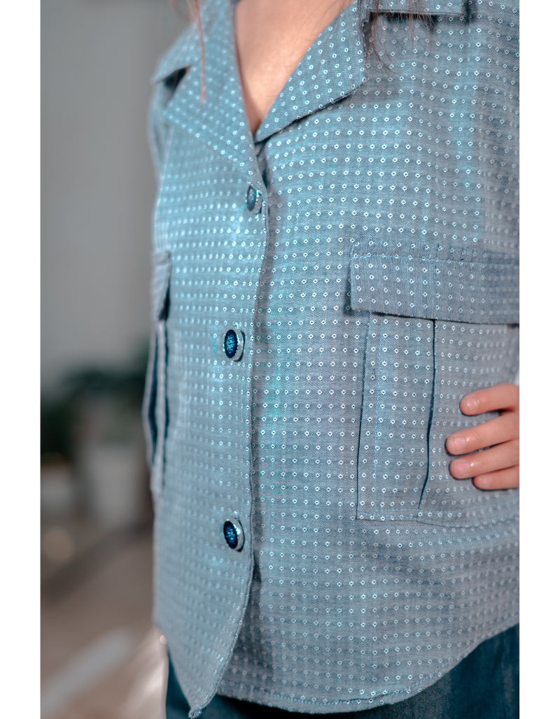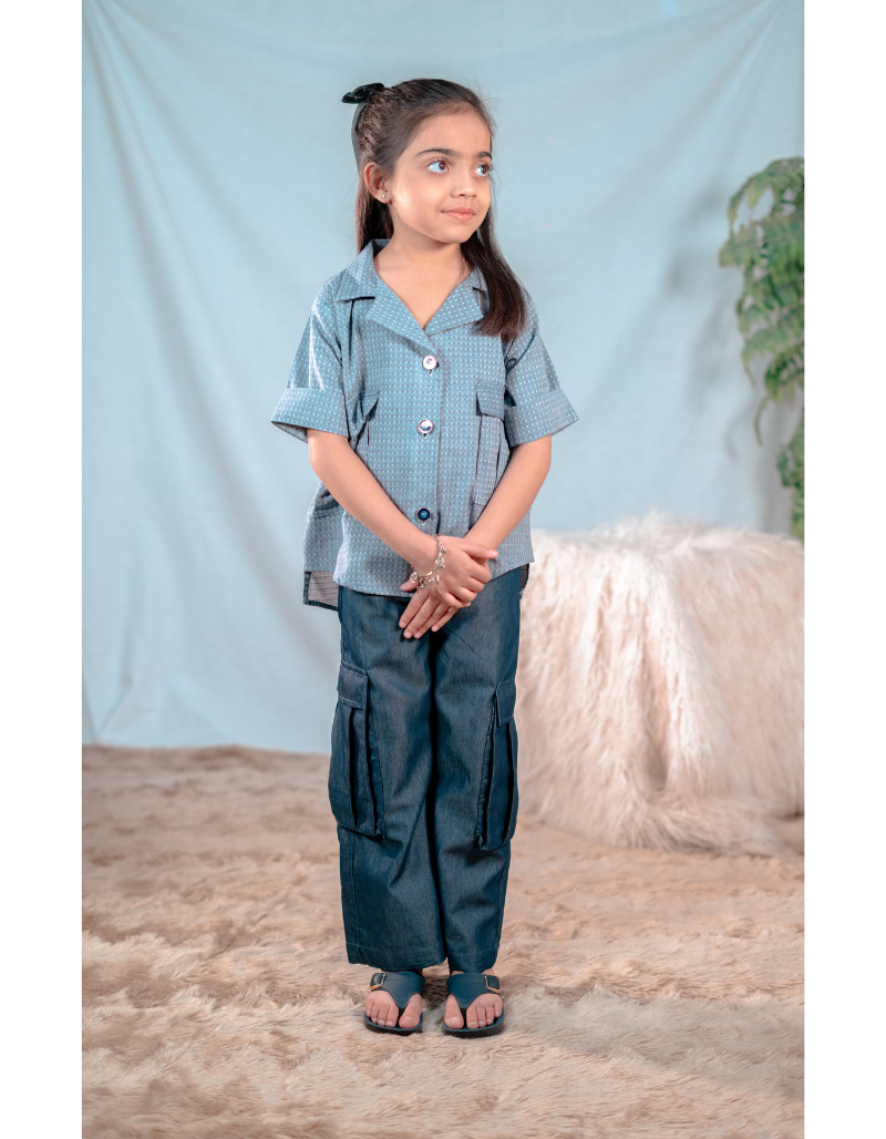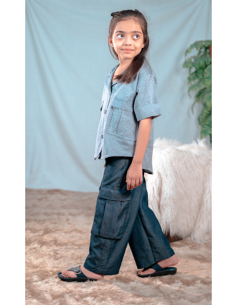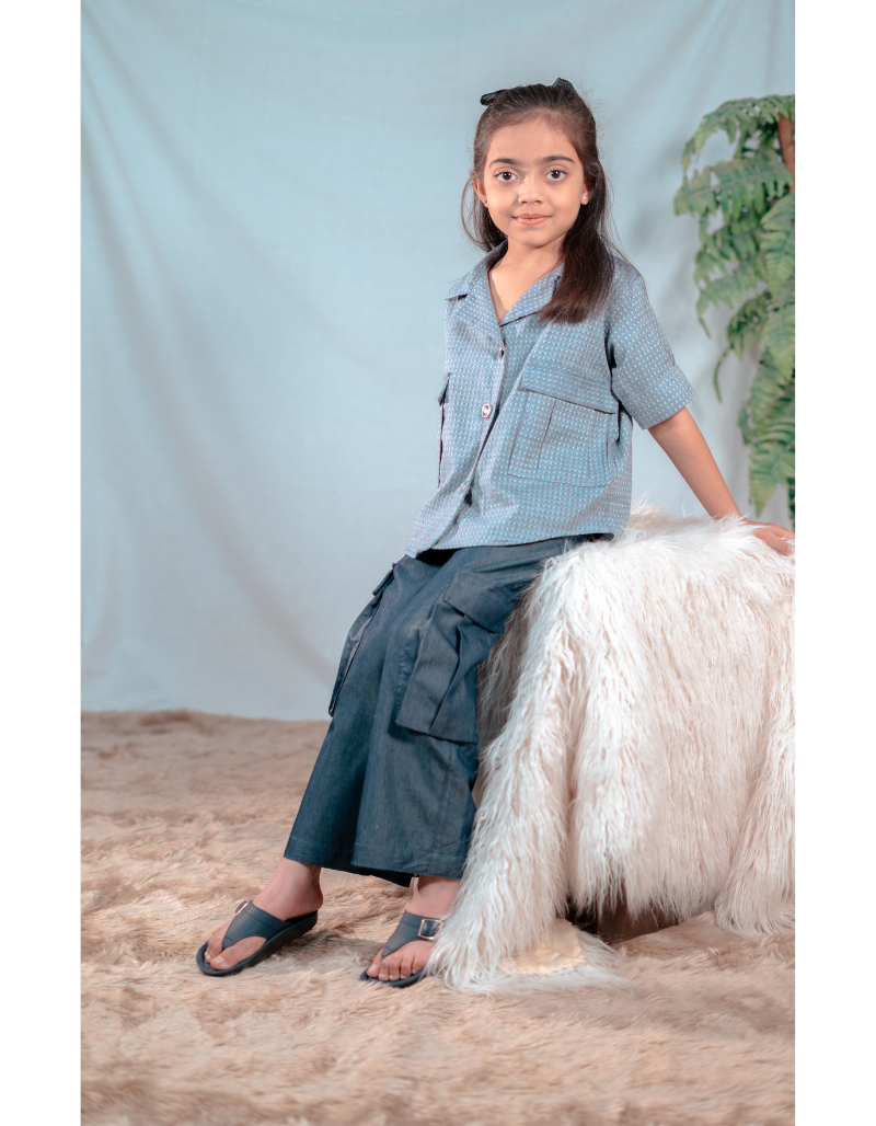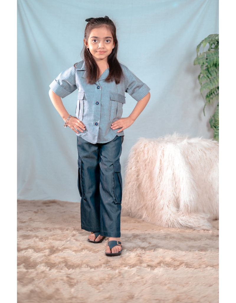 Detail: Textured stitched 2-Piece Fabric: Denim Color: Light & dark blue denim combination